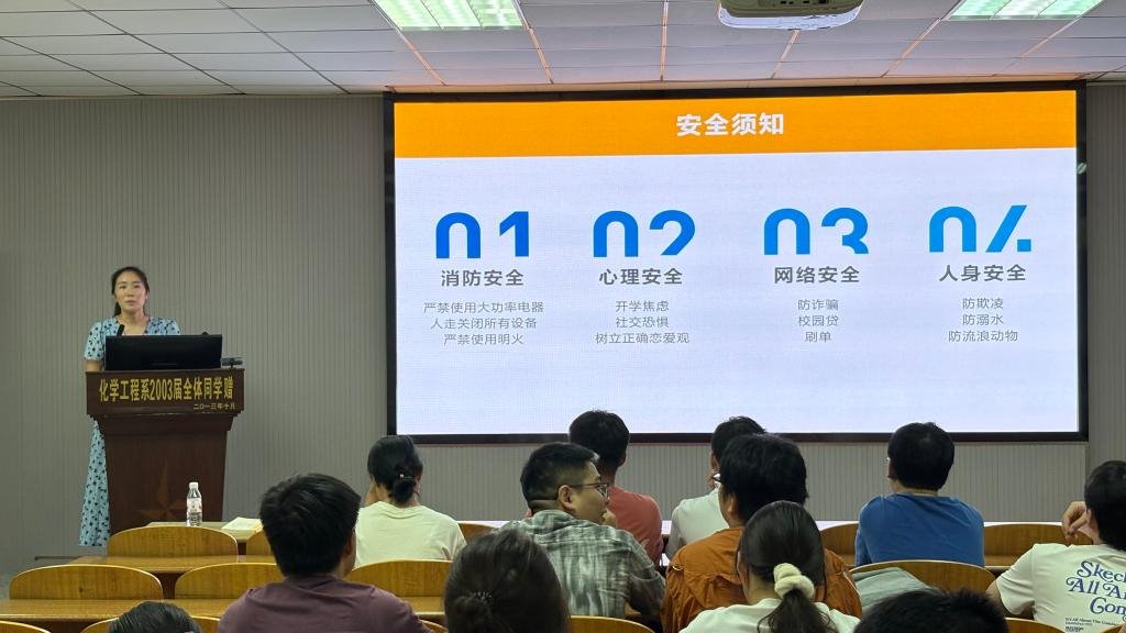 辅导员王陈系统讲解了消防安全、心理安全、网络安全和人身安全相关内容,强调学术诚信与考试纪律,并组织集中学习了《球王会体育官方网学生请假办法》等多项规章制度,提醒大家严守校纪校规,成为德才兼备的研究生。