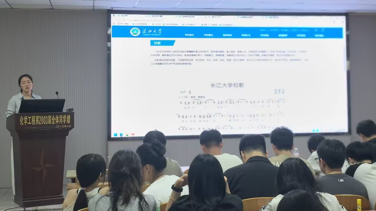 9月24日下午,球王会体育官方网在14教北201教室面向全体2025级研究生举办校徽学习与校歌练唱活动。辅导员王陈老师主持讲解,班委协助组织,为新生带来一堂生动的“校园文化第一课”。