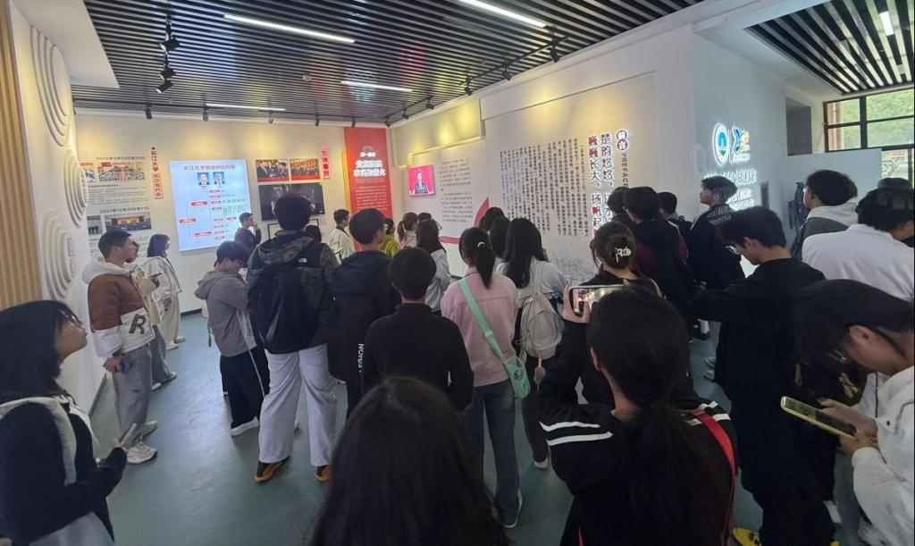 来到校史长廊,新生们沿着学校发展足迹缓缓前行,从泛黄的老照片与详实的文字中,回溯学校在不同历史时期的发展轨迹。在“师资力量”“科研平台”展区,优秀教授的介绍展板与国家级、省部级科研平台铭牌整齐陈列、相互映衬,集中呈现了学校雄厚的师资队伍与高水平的科研支撑体系。