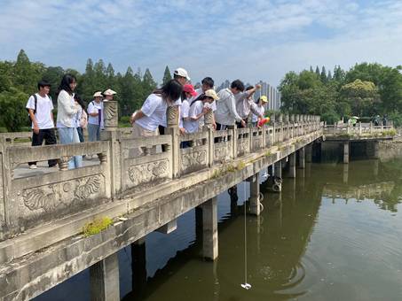 随后,学生来到护城河畔,开展了捡垃圾和检测护城河水质的实践活动。大家分成若干小组,沿着护城河岸仔细清理垃圾,不放过任何一个角落。同时,在魏平方老师的专业指导下,学生对护城河水质进行了检测,了解水质状况,并为后续的水质治理提升提供数据支持。