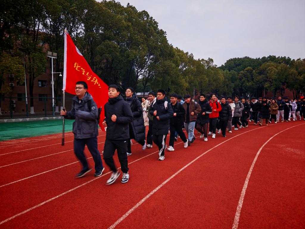 仪式最后,兼职辅导员付涛带领全体同学开展健康跑活动。晨光熹微中,同学们步伐坚定、精神昂扬,奔跑的身影彰显出化工学子蓬勃向上的朝气与不懈奋进的志气,以实际行动诠释了青春应有的活力与担当。