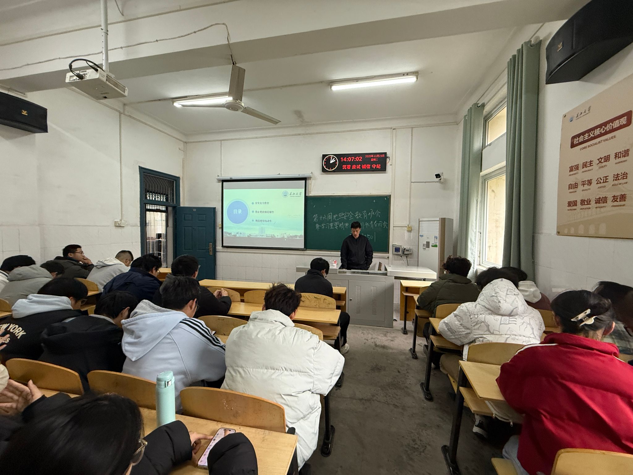 随着元旦佳节临近,为切实强化研究生安全防范意识,保障全体学子度过一个安全、欢乐、祥和的假期,12月24日起,球王会体育官方网以班级为单位,组织本科生、研究生各班开展系列元旦前后安全教育主题班会。
