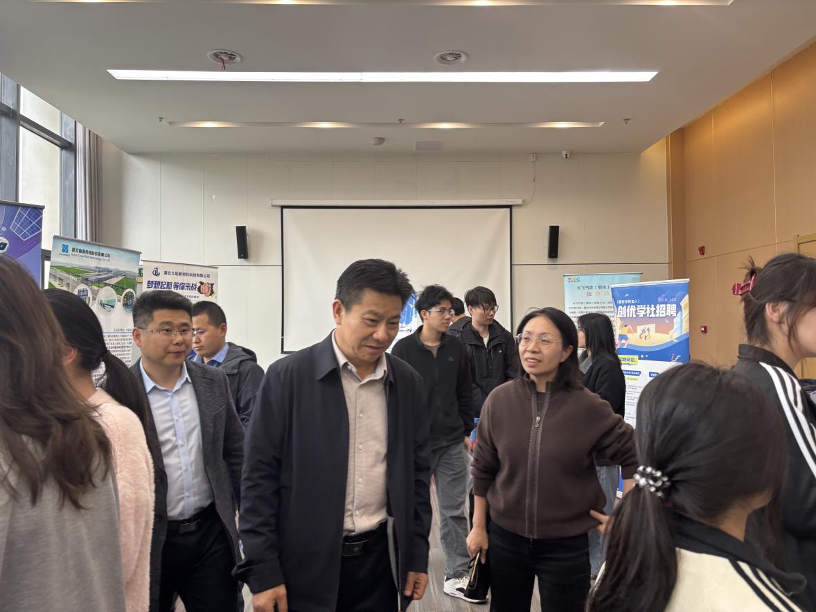 招聘会现场气氛热烈、秩序井然。毕业生们手持精心准备的简历,有序穿梭于各企业展位之间,主动与招聘负责人交流沟通。各企业招聘人员热情介绍企业优势与岗位需求,耐心解答毕业生疑问。李应军等逐一走访企业展位,与用人单位代表亲切交流,详细了解企业人才需求、招聘进展及对学校人才培养工作的意见建议。