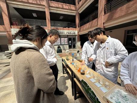 活动期间,球王会体育官方网志愿者着装规范、精神饱满,为来访师生详细讲解展位特色,分享“碧波长歌”护水实践队的调研故事,展现了化工学子扎实的专业素养与良好的文明风貌,得到了现场师生的一致好评。