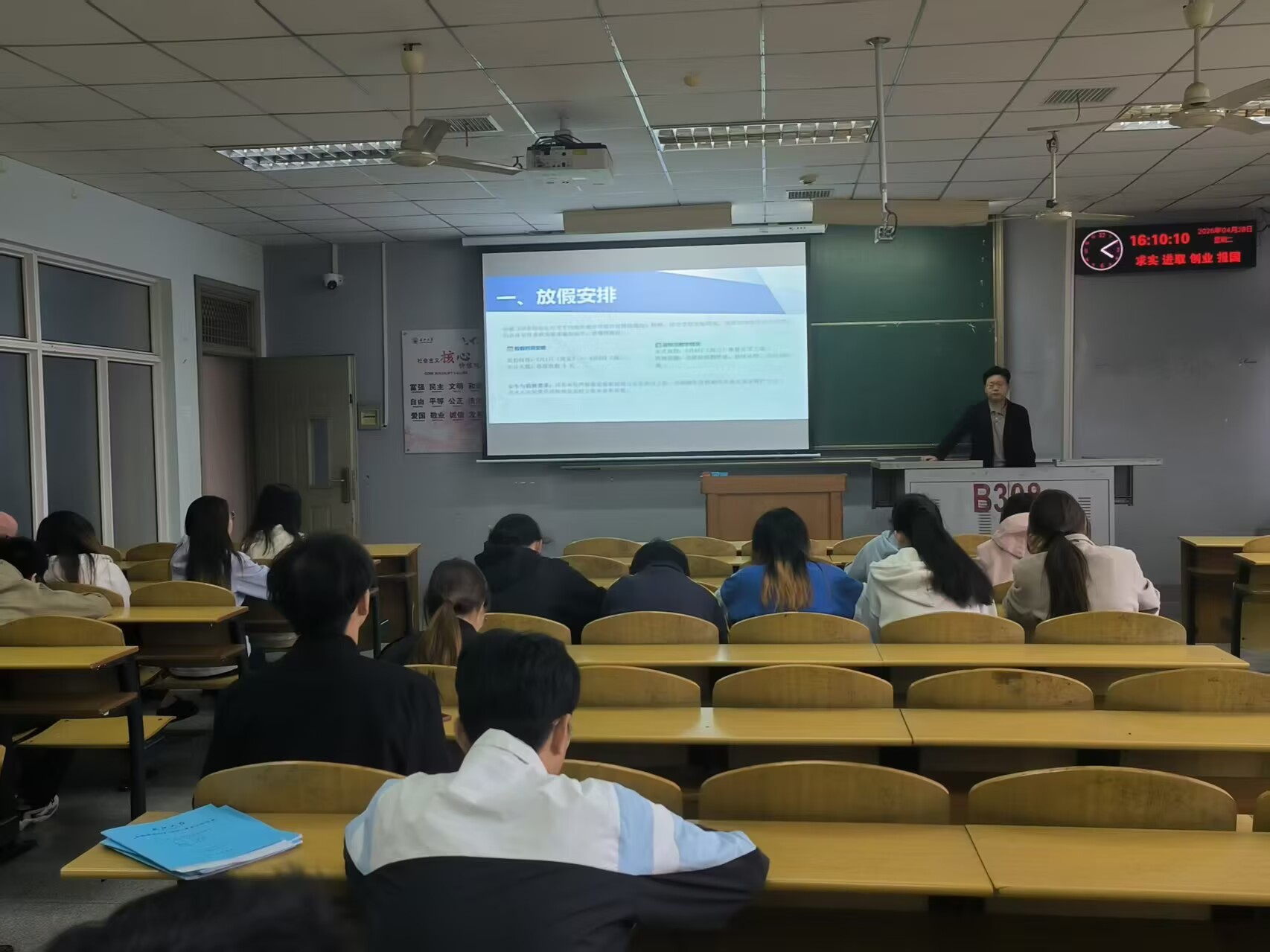 (通讯员 王陈)2026年五一劳动节假期将至,为切实守护学生假期安全,进一步提升学生安全防范意识,杜绝各类安全事故发生,保障全体学生度过平安愉快的假期,4月23日-4月29日,球王会体育官方网组织全体学生召开五一假期安全主题班会。本次班会分层有序开展,本科生各班由班主任牵头组织,研究生班级由辅导员统筹安排,导师深度参与,实现安全教育全覆盖。