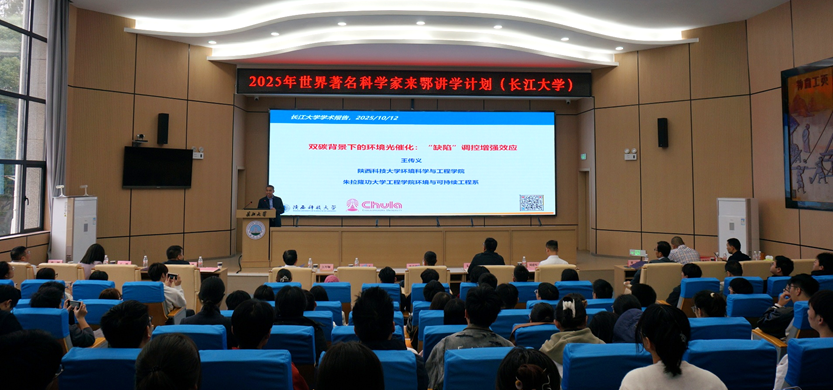 10月12日上午,2025年世界著名科学家来鄂讲学计划启动。欧洲科学院院士王传义教授一行3人应邀做客“长江化工讲坛”,在东校区11教学术报告厅,为全校师生带来题为“双碳背景下的环境光催化:缺陷增强效应”、“电化学氧化与还原技术及装备”和“有机污染场地生物绿色修复菌剂研发及应用示范”的学术报告。党委常委、副校长江厚顺对王传义院士一行表示热烈欢迎,球王会体育官方网院长赖璐主持报告会,党委书记王丽、副院长肖围、青年教师、研究生和部分本科生一起聆听了报告。