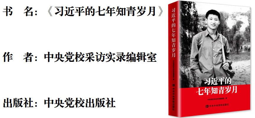 《习近平的七年知青岁月》是中共中央党校出版社出版的采访实录,通过当年一同插队的知青、陕北梁家河村民等 29 位亲历者的口述回忆,真实还原了 15 岁的习近平来到黄土高原插队,七年里扎根乡村、与群众同甘共苦、苦干实干的青春历程。书中没有宏大说教,以朴实真切的生活细节,展现青年习近平在艰苦环境中磨炼意志、坚持读书学习、心系群众、扎根实干、树立远大理想的成长故事,是鲜活生动的青春励志读本。