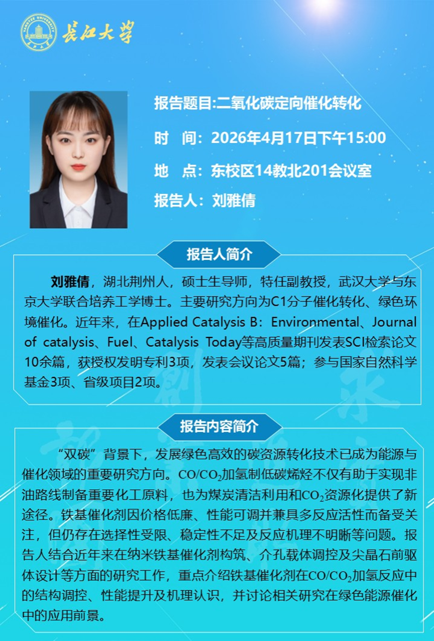 长江化工讲坛:二氧化碳定向催化转化